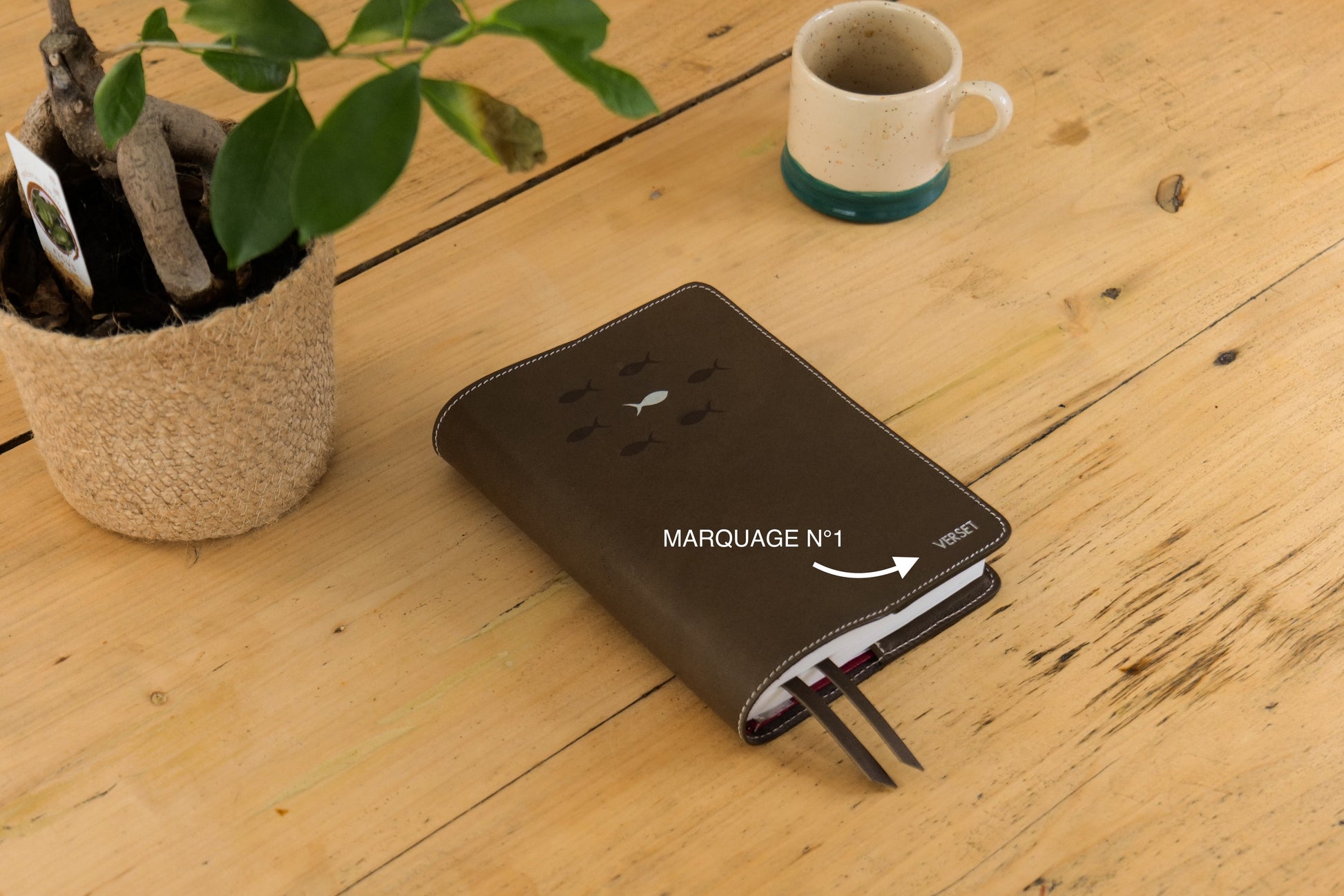 - Deux marque-pages en cuir : pour suivre plusieurs passages en même temps.